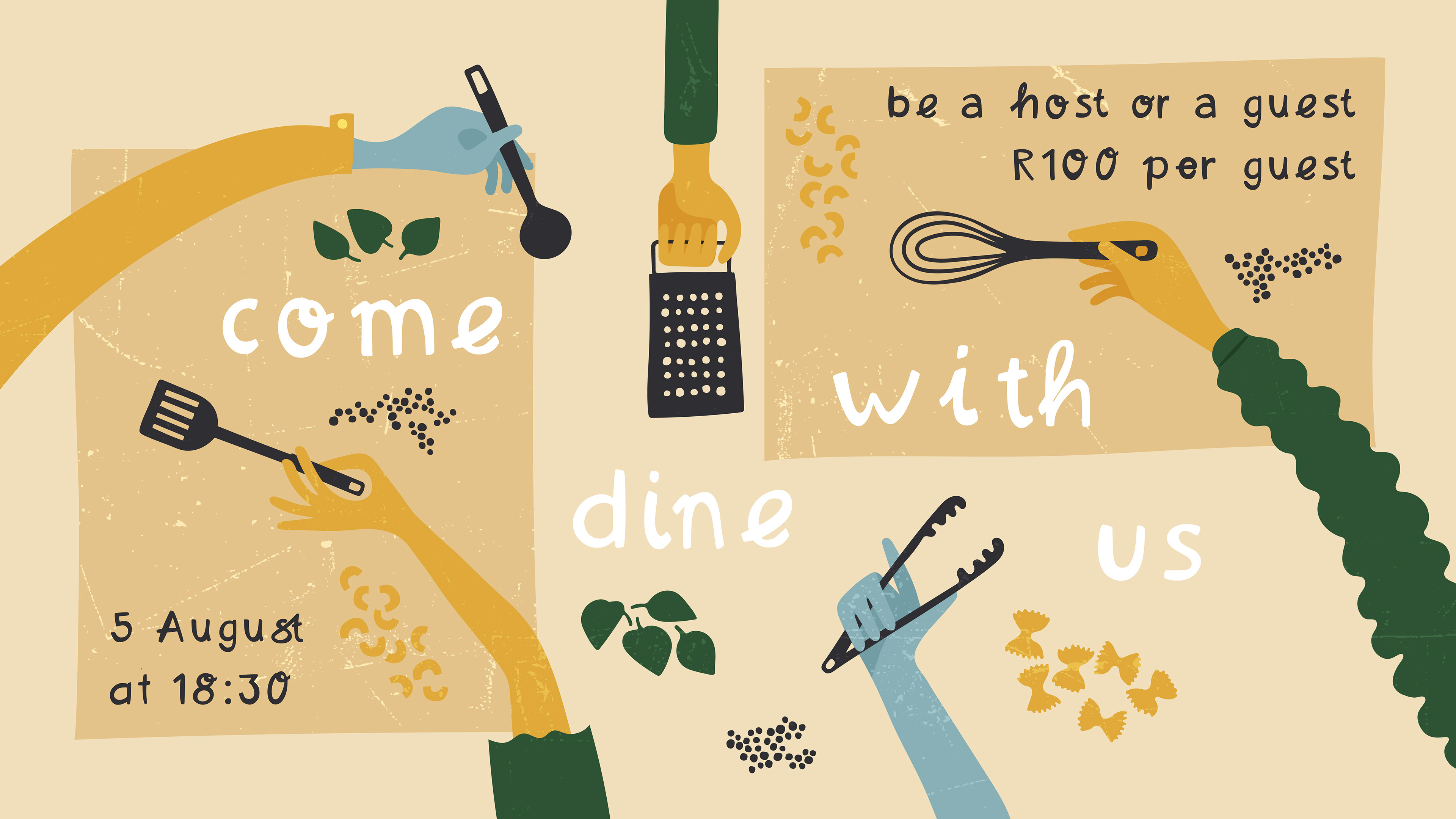 I was tasked with illustrating a graphic for Come Dine With Us, an event centred around sharing a meal with people you’ve never met before. The illustration needed to capture a sense of warmth, connection, and togetherness — reflecting the joy of good food and new friendships. The final artwork conveys a welcoming atmosphere, inviting people to gather, share, and connect around the table.