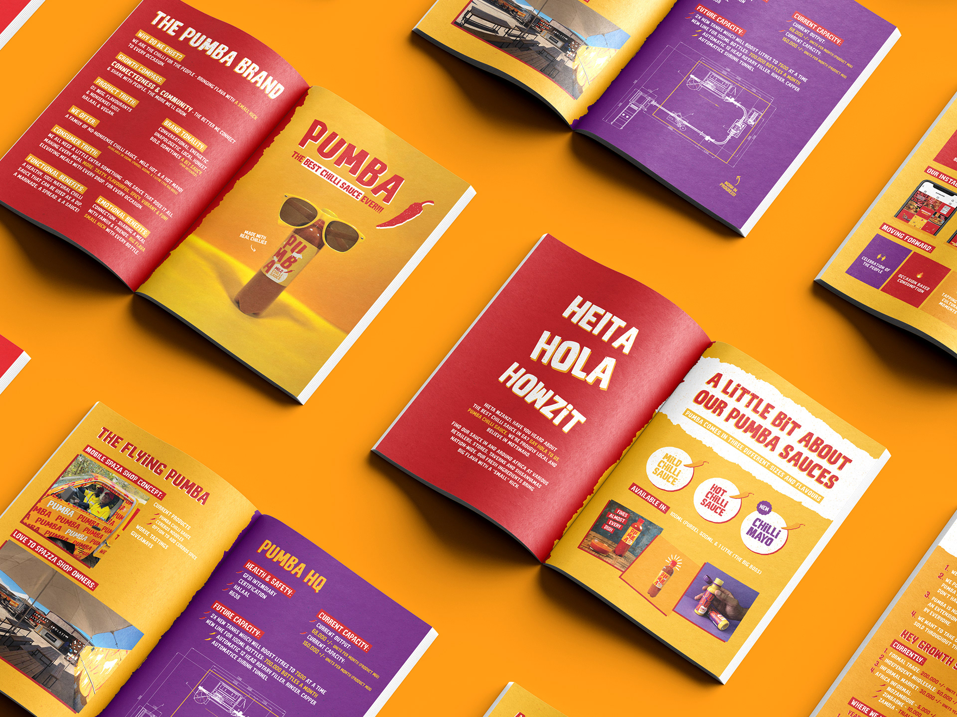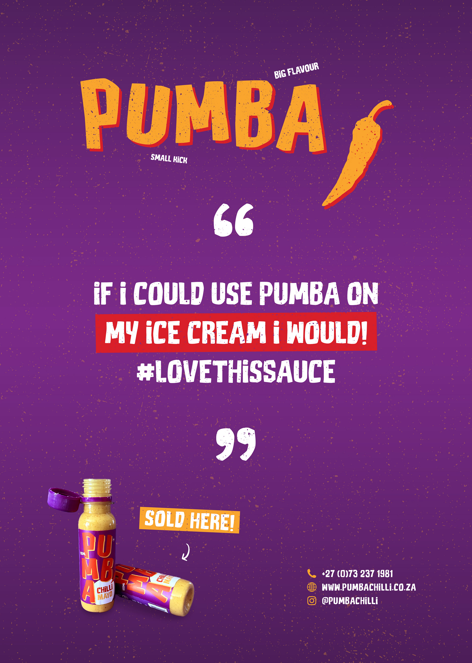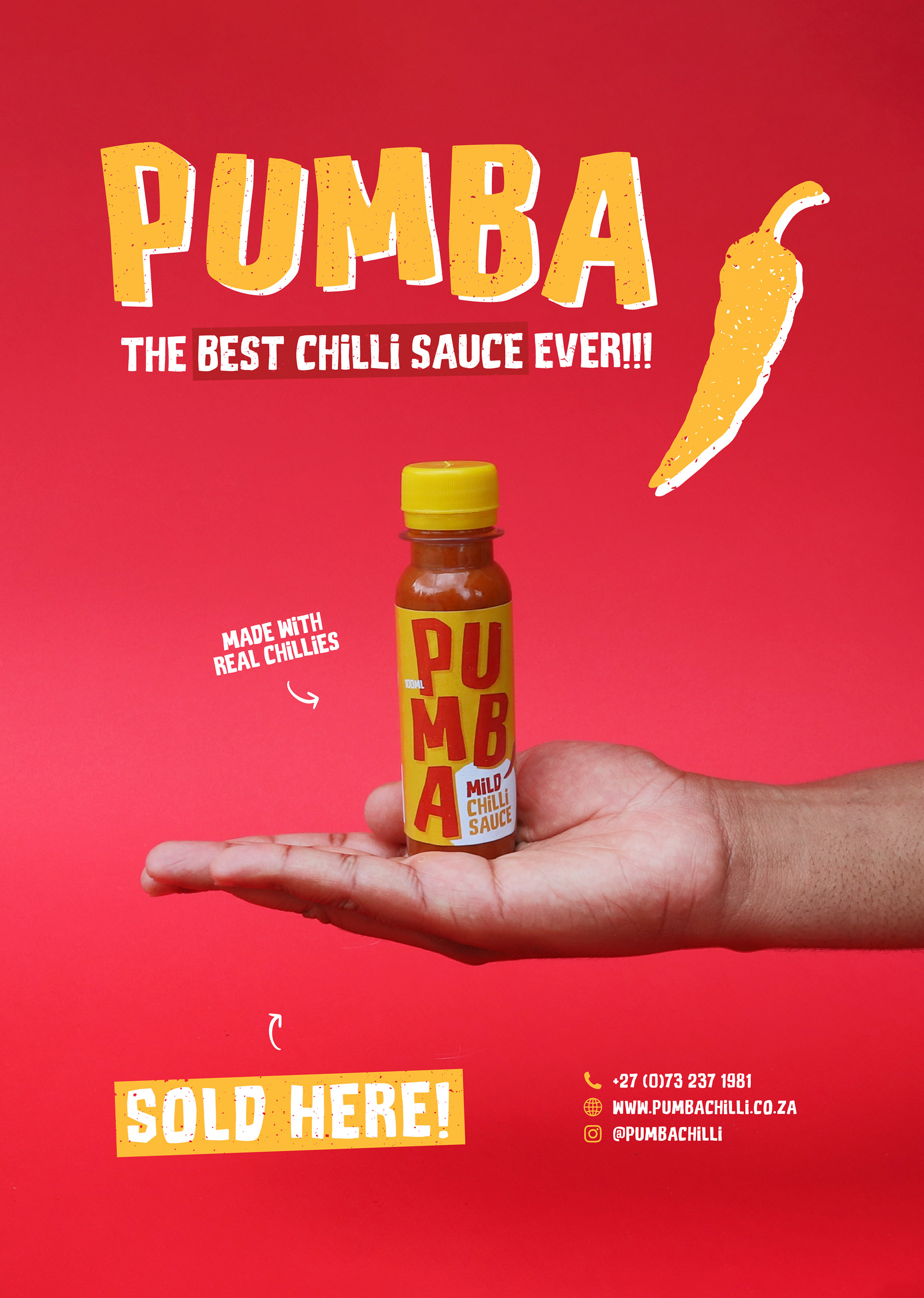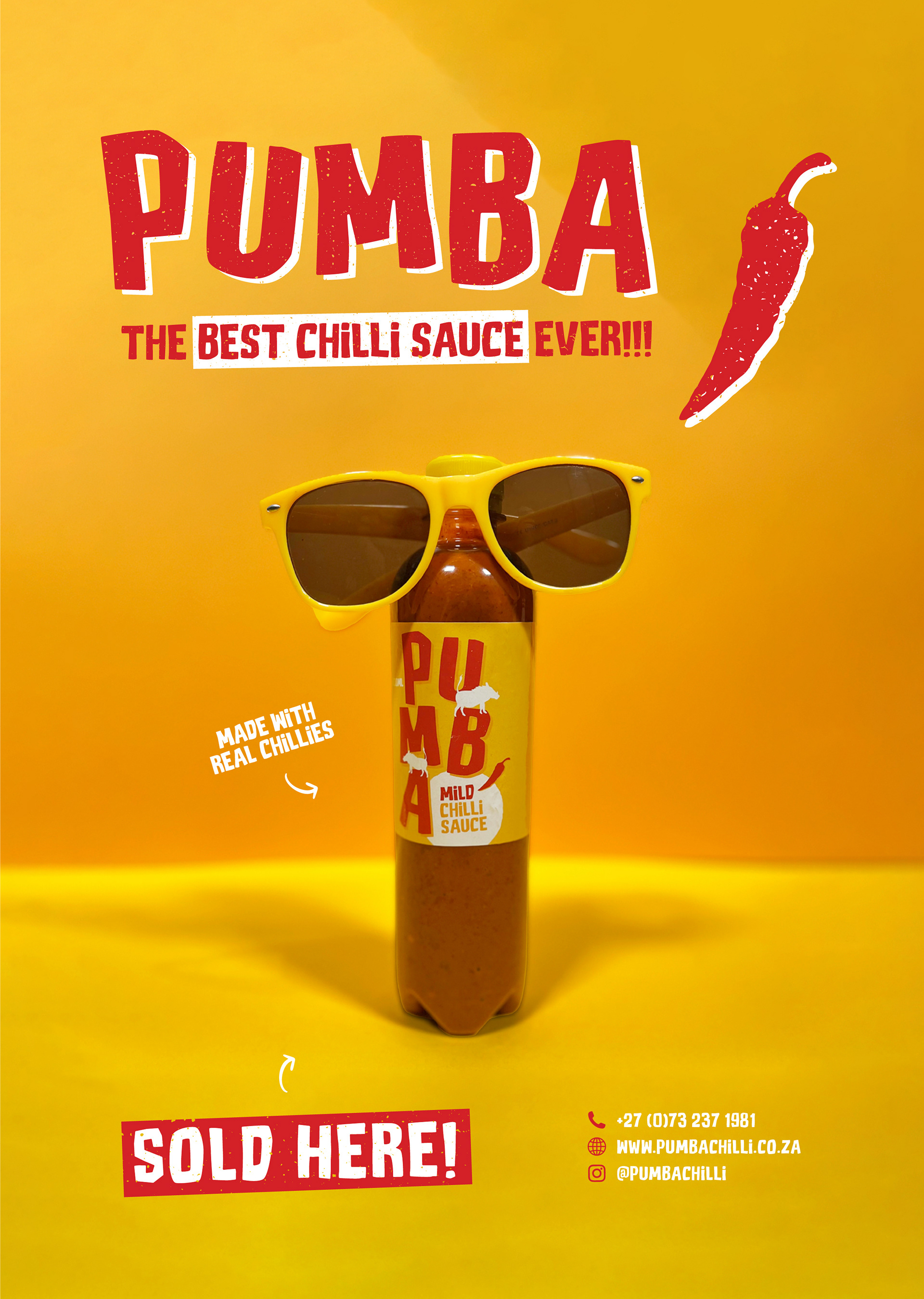 I work with PUMBA, a bold South African chilli brand, to expand and express their visual identity across multiple platforms. Building on their existing corporate identity, I’ve developed a wide range of creative outputs — including bottle packaging, brand activations, print media, email campaigns, and the full design of their website. Each piece is crafted to reflect PUMBA’s vibrant, fiery personality while maintaining brand consistency and a strong visual impact across all touchpoints.