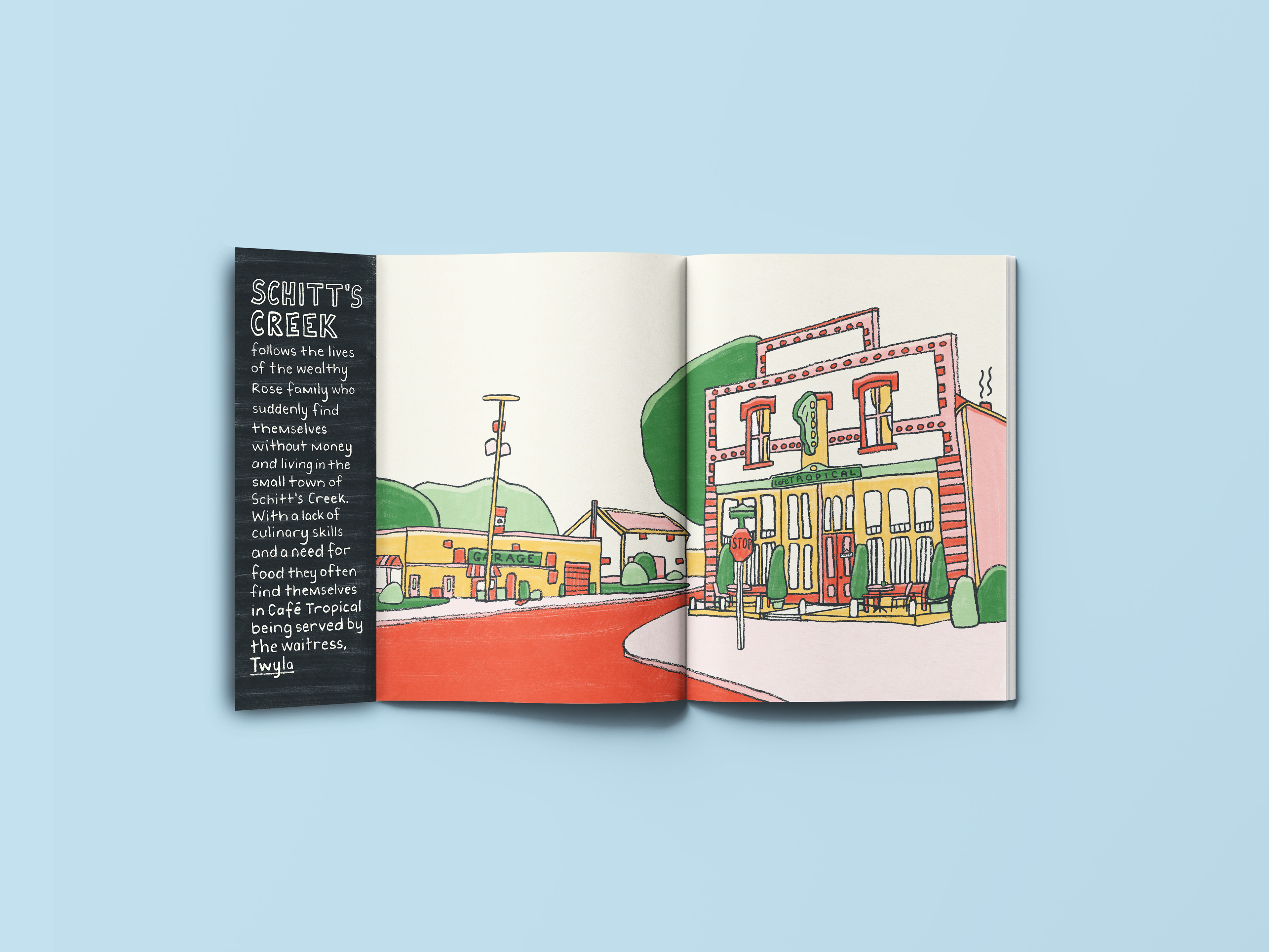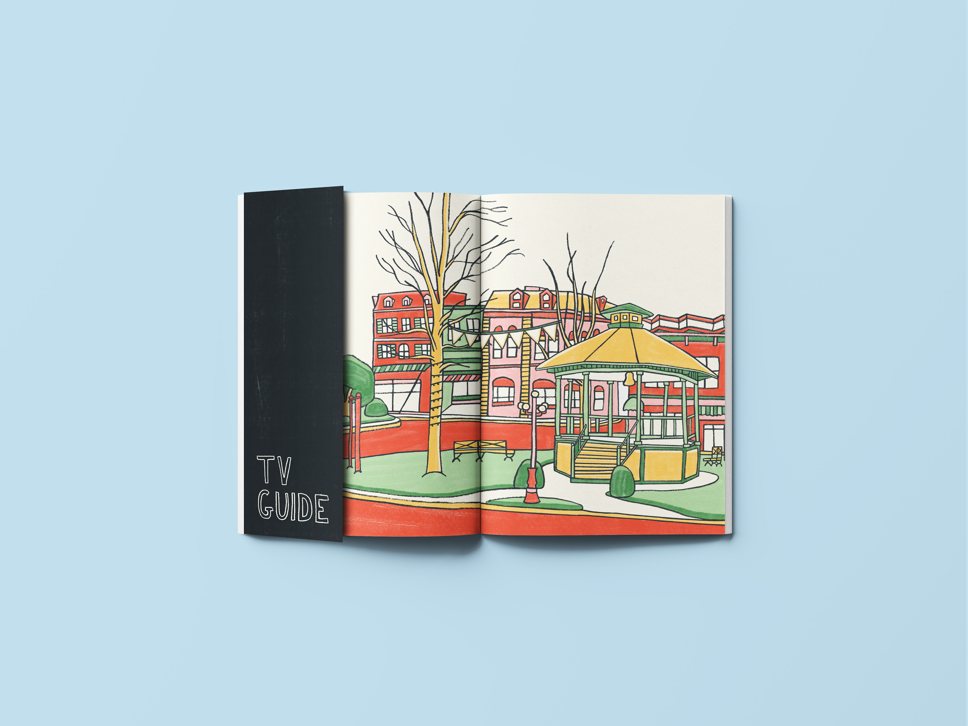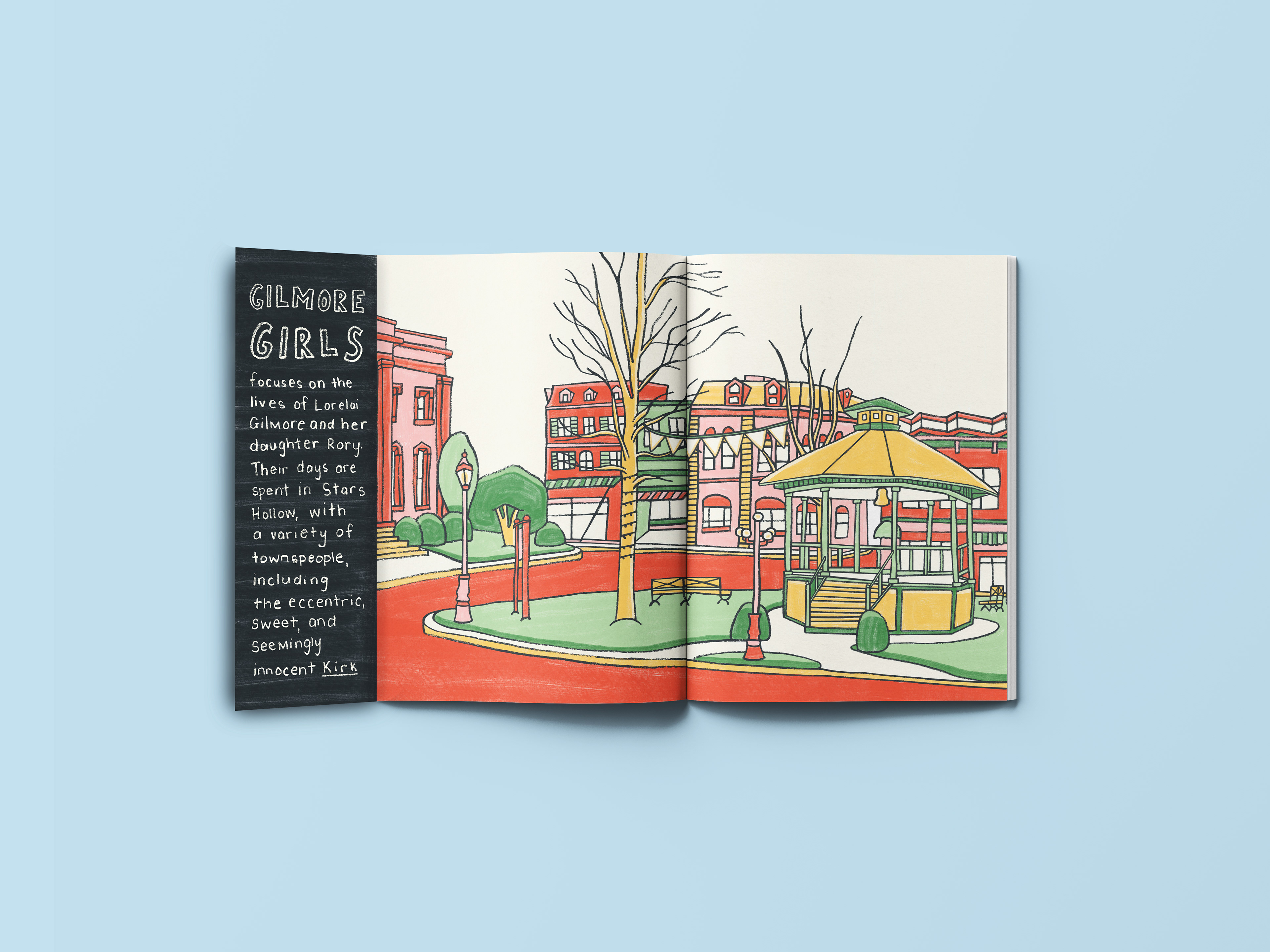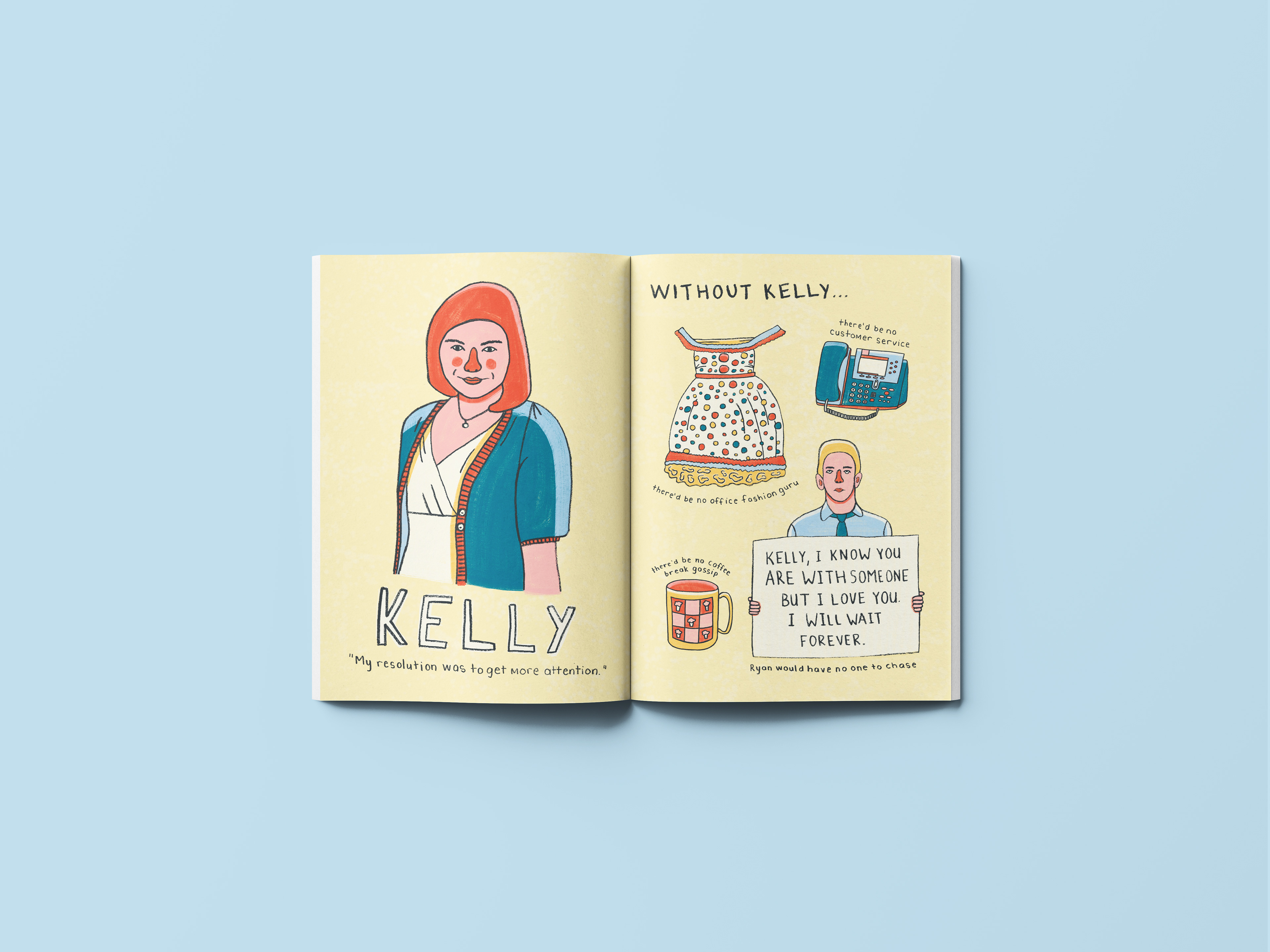 I was tasked with creating an illustrated zine featuring four profiles, four object pages, and four environment illustrations. Working within the theme “Places I’ve Never Been To and People I’ve Never Met,” I developed my own concept and content titled Sitcom Sidekicks. The zine explores the often-overlooked supporting characters from beloved television sitcoms, highlighting their importance in shaping storylines and supporting the main cast. Using a hand-drawn illustration style, I aimed to evoke a sense of comfort and familiarity — mirroring the warmth and nostalgia we feel when watching our favourite sitcoms.