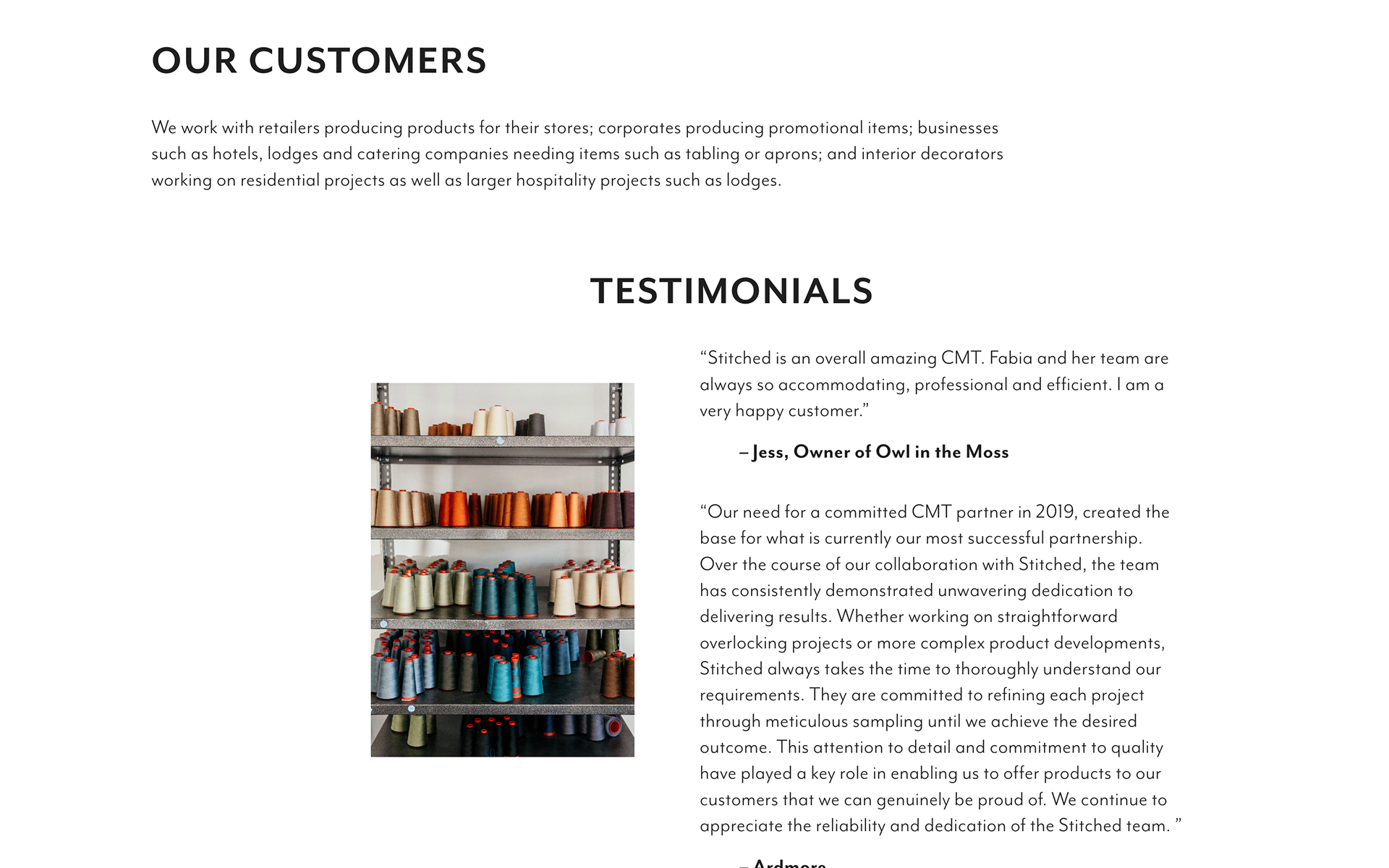 I was commissioned to create the visual identity and website for Stitched CMT, a Johannesburg-based cut, make, and trim company. The brief called for a bold, clean logo that could appeal to a wide range of clients while reflecting the company’s commitment to producing high-quality garments for high-end brands. The branding needed to stand out within the competitive manufacturing industry, conveying both excellence and versatility. The website extended this visual language – blending sophistication with warmth to showcase Stitched’s premium craftsmanship and genuine care for every product made in-house.
